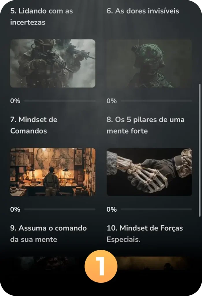 Ao entrar na plataforma, você escolhe um caminho sem volta. Cada módulo foi construído com base em experiências reais: erros, aprendizados e superações vividas nas Forças Especiais do Exército Brasileiro.